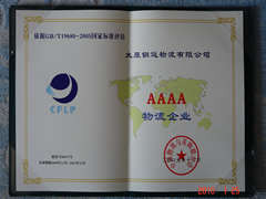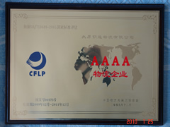 2010年1月22日,我公司榮獲中國物流與采購聯(lián)合會(huì )審定的“AAAA級綜合服務(wù)型物流企業(yè)”資質(zhì)。